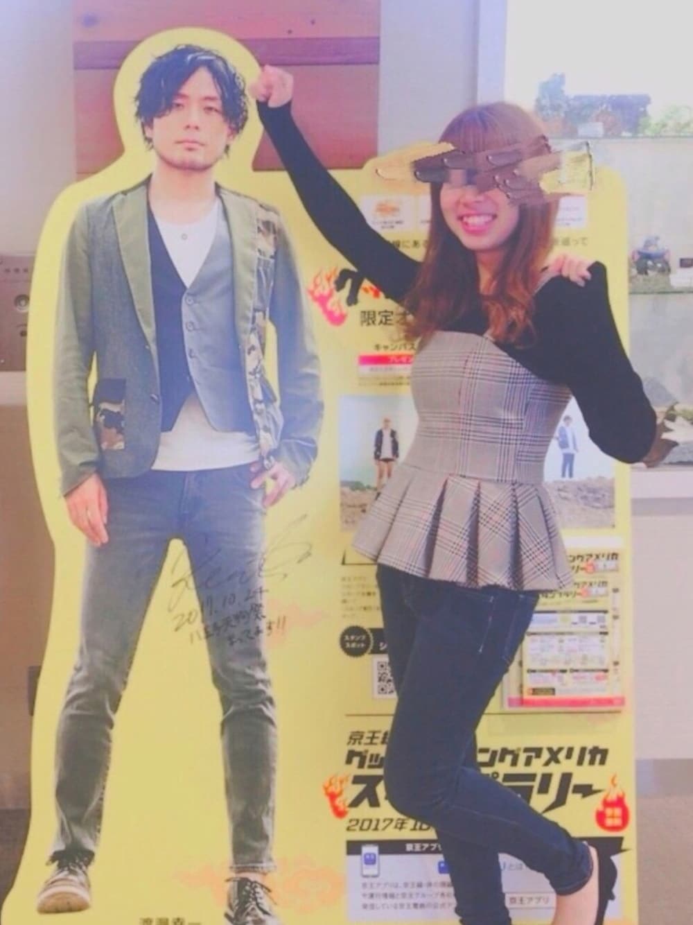 1026👼 友達の赤ちゃんに会いに調布方面へ! ちょい足伸ばしして大好きなバンドの 大好きなメンバーのパネルに会い バンドポーズをしてきた!(恥晒) SLYのビスチェはPassCodeの かぴよちゃんとお揃い😊💕