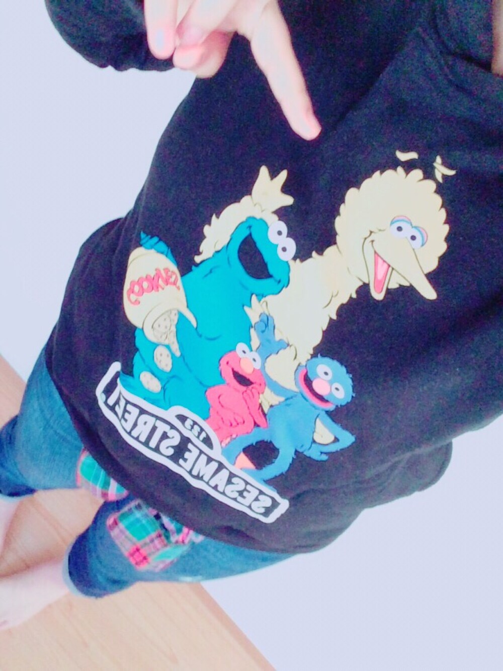 にこ。のスウェットを使ったコーディネート