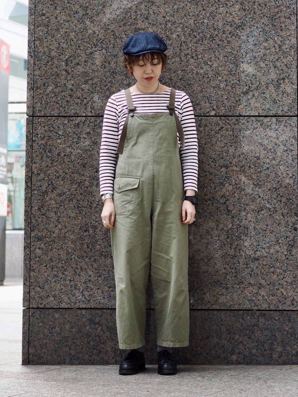 今日のテーマはデニム✖️サロペット🔵🟢 最近ハンチングが気になります🌟 デニム好きの私にはたまらない😌 いい感じのワンウォッシュ👖