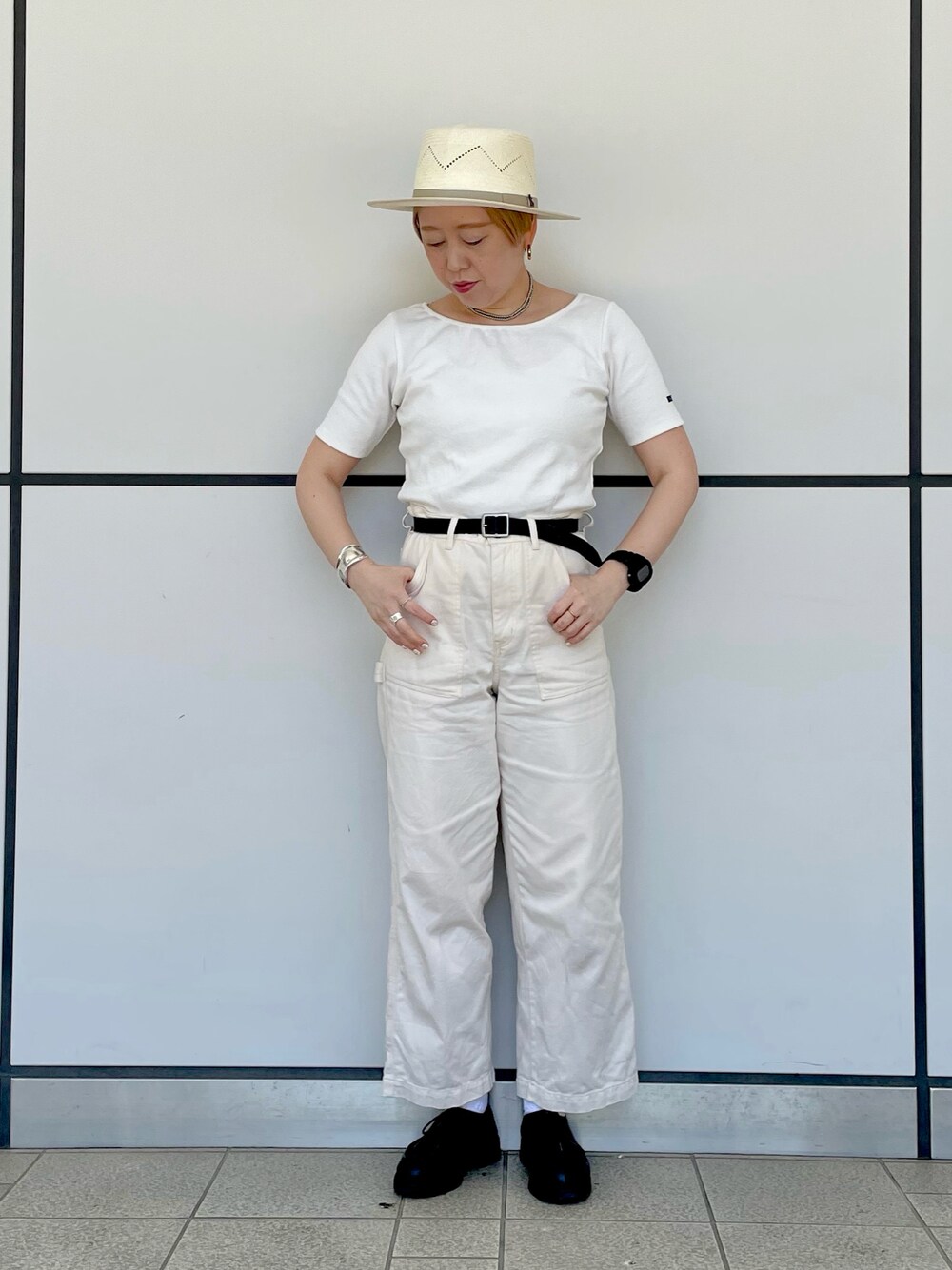 クラウンのセンターに筋が入ったオプティモ型。 透かし編みのレースの部分が涼しい✨ 今日はホワイトコーデでまとめてみました! ハットはメンズサイズですがレディースの方も被って頂けます😄