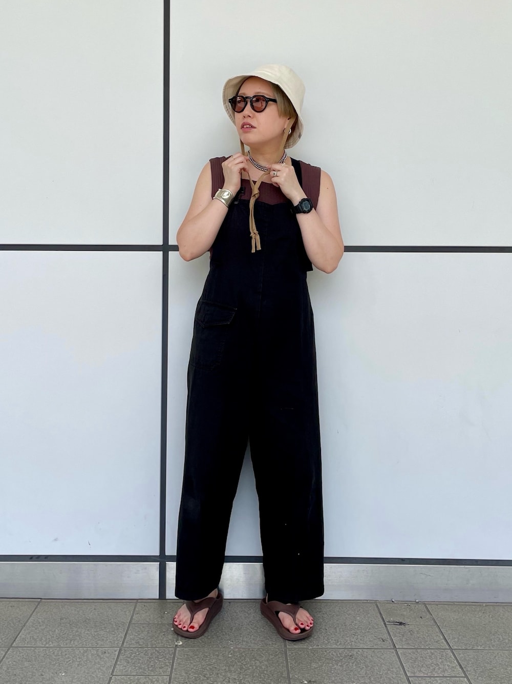 UVカット 90%の紐付きチューリップ。 アイボリーは夏にぴったりのカラーでおすすめ!!! 今日は夏コーデっぽく、ノースリーブとサロペットに合わせてみました😄😄😄