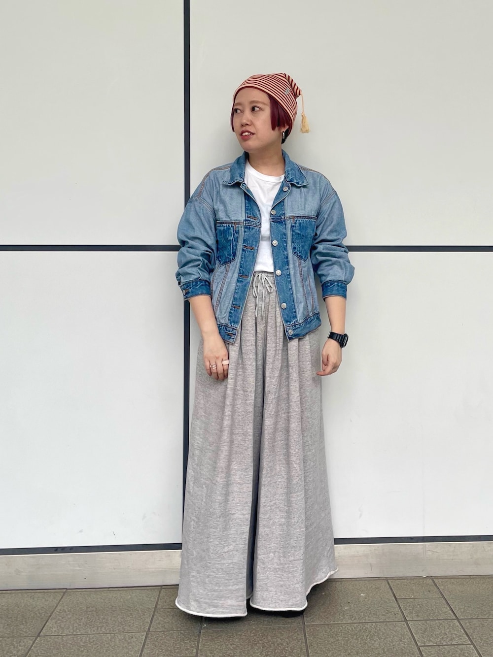 ボーダー好きにはたまらない、細ボーダーの耳付きニット。 タッセルも付いていて揺れるのが可愛い 思ったほど、耳が主張しないので初めの方でも被りやすい⭕️ デニムに合わせるならぜったい赤がおすすめです👍
