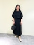 ブラウスはシンプルな作りですが裾が少し動きが出るシルエットとなっており、アクセサリーを足した時にもごちゃつかないデザインです!同素材でパンツもご用意があるのでスカートが苦手な方は是非パンツ合わせでセットアップで着てみて下さい。(普段使いはデニム合わせがオススメです!) スカートは上をシンプルな物を選んだのでデザインがある物にしてみました。トップスに合わせてBLACKにし、セットアップのように着ていただけます。ウエストは後ろがゴムなのでトップスをインしても窮屈じゃなかったです。(普段使いはカーディガンやオーバーサイズのロンティー合わせがオススメです!)