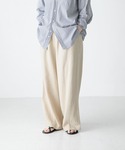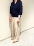 一つあると色々なシーンで活躍するシアーニットをご紹介します♪ とても柔らかなシアーニットで、サラッとめの質感なのでタンクトップに合わせてもチクチク感が気にならずに着れました。二の腕周りがゆったりなのも嬉しいポイントですよね! 首のあきも少なめで、普段Vネックを選ばない方でも着やすいと思います。 ノースリーブのワンピースに羽織として合わせても◎ パンツは高身長の方でも合わせやすい丈感で、綿が入ったしっかりめの生地なのでストンと落ちたシルエットがきちんと感も出しやすい一着です。