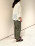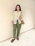 羽織るだけで華やかになる透かし編みのカーディガンはいつものスタイリングに足すだけでこなれ感がでるオススメの一着です。 夏場もノースリーブが苦手で羽織を合わせていることが多いのですが、見た目が暑苦しくなってしまう事があるので程よい透け感が個人的に凄く嬉しいです!前後2way使用なので羽織では無くトップスとして着る事も出来ます。 インナーに合わせているタンクトップは肉厚で見せれるデザインなので、ジャケットやシャツなど前開きの羽織の下に合わせるのがおススメです。 パンツは流行りのない定番アイテムなのでボトムの買い足しで何かお探しの方にお勧めです。色違いで買われる方も多いぐらい程よいストレッチがあり履き心地も楽ちんでした。裾もすっきりしており丈が長めのトップスとの相性も◎