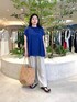 大人の夏カラーコーデをご紹介します♪ トップスはスタッフ一押しでパンツスタイルが多い方は是非ゲットして頂きたい一着です。 体系カバーな丈感とシルエットが◎ とても軽い生地で着ていてとても着心地が良かったです。 軽めな分薄手に感じますが身頃部分は綿の裏地が付いているのでインナーも響きにくく、脇の部分もあきが少なく安心ポイントでした! パンツは普段太もも周りのサイズ感で諦めるボトムもありますが、パンツは実際に履いていて全くサイズ感が気にならなかったのでヘビロテしています。 カジュアルすぎない素材感なので今回のコーディネイトもシューズやバックをキレイ目に変えて頂くと、通勤コーデにもピッタリです!