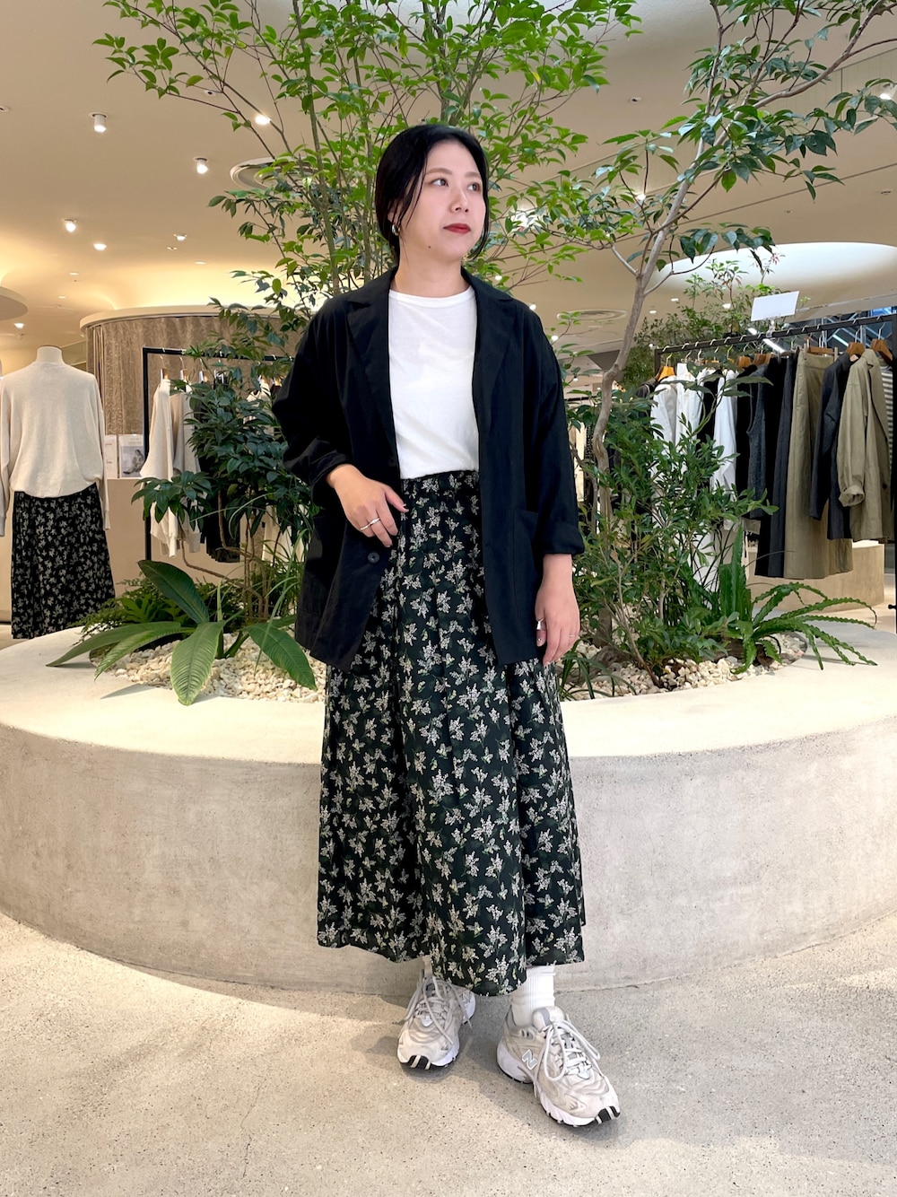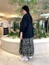 ジャケットを使った大人カジュアルコーデをご紹介します♪ 大人カジュアルなスタイリングには欠かせないジャケットはとっても軽い素材感で手軽に着て頂けます! コットン素材でお仕事感も抑え目なお素材で、黒は組み合わせによっては更にきちんと感も出しやすく◎ オーバーサイズすぎずスッキリしたシルエットが色々なボトムのシルエットと合わせやすかったです。 スカートは大人気シリーズの新しい柄でブラックベースにグリーンとホワイトの差し色がモノトーンスタイリングのワンポイントにピッタリです! 元々広がりが抑え目なAラインスカートですが、ジャケットを合わせて更に腰回りがスッキリ見えするような組み合わせにしました。