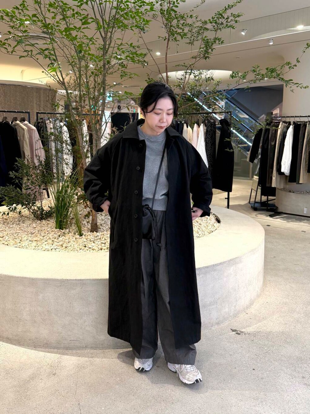 アウターは以前サイズ1をご紹介しているので今回はサイズ2を合わせてます♪ オーバーサイズが好きなのでゆとりはサイズ1と比べても気になりませんでした。お袖は長めなので折り返して着ており、ご家族の方と共有で着たりも出来るぐらいだと思います! トップスも以前サイズ1をご紹介したので今回はサイズ0を着用しています。 身幅も変わる分サイズ0は腰辺りで止まってくれるのでインせずにも丁度いい丈感で着れました!