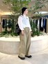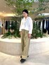 シャツは前開きなので羽織にもなるのでインナー次第で今からでも来て頂ける万能アイテムです。 今回は閉じてトップスの様に着ており裾もすぼめる事で丸みが出でシルエットをかなり変えて頂けます。 腕回りもゆとりがあるので長袖に合わせても、もたつかずに来て頂けます! インナーに合わせたタンクトップはシルクが入ったお素材で着心地が◎ 個人的に嬉しいポイントとしてリブの幅が太めでちらっと見えてもインナー感が少ないのと、首周りの後ろ側のあきが浅く背中の汗染みが洋服に滲み難くておすすめです! パンツはとにかく楽ちんな物をお探しの方にオススメです。 軽くてゆとりがあるシルエットなので普段使いにピッタリです。 少しハリがある生地なのでピタッとせず、体のラインが出るのが苦手な方にも是非ゲットして頂きたい一着です。