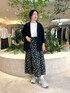 ジャケットを使った大人カジュアルコーデをご紹介します♪ 大人カジュアルなスタイリングには欠かせないジャケットはとっても軽い素材感で手軽に着て頂けます! コットン素材でお仕事感も抑え目なお素材で、黒は組み合わせによっては更にきちんと感も出しやすく◎ オーバーサイズすぎずスッキリしたシルエットが色々なボトムのシルエットと合わせやすかったです。 スカートは大人気シリーズの新しい柄でブラックベースにグリーンとホワイトの差し色がモノトーンスタイリングのワンポイントにピッタリです! 元々広がりが抑え目なAラインスカートですが、ジャケットを合わせて更に腰回りがスッキリ見えするような組み合わせにしました。