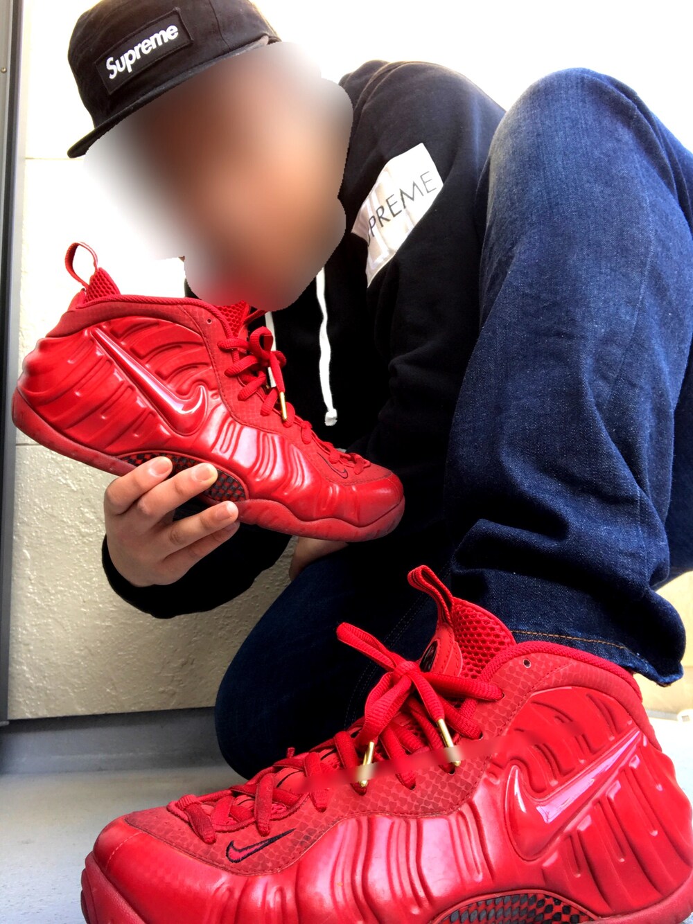 こんにちは🙋🌇 今回いつもと変えて、キモ撮りに挑戦してみました笑 想像以上に恥ずかしい😱😱笑 スニーカー好きの方ならこの撮り方を知ってる方も多いでしょう👟✨✨ 1回目として僕がスニーカーにハマるキッカケになったfoamposite proとパシャり📸 日本でもまだ売ってるとこはちらほら見かけますが、自分はNYで買ってきました😇😇💦笑 真っ赤であることと、proの外側に大きくデザインされてるNIKEのロゴがたまりません😍💕💕 また気が向いたら他のスニーカーでもやってみようと思います💪😤 それでは〜〜👋👋👋