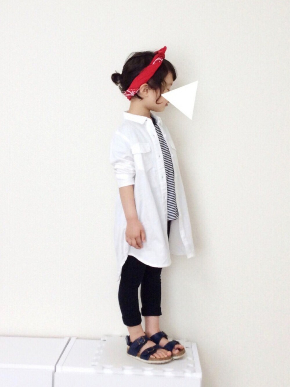 モノトーン × 赤バンダナの日 ☺️ シャツワンピは 羽織ってもすっきり ◎ * 見てくださり ありがとうございます ♡