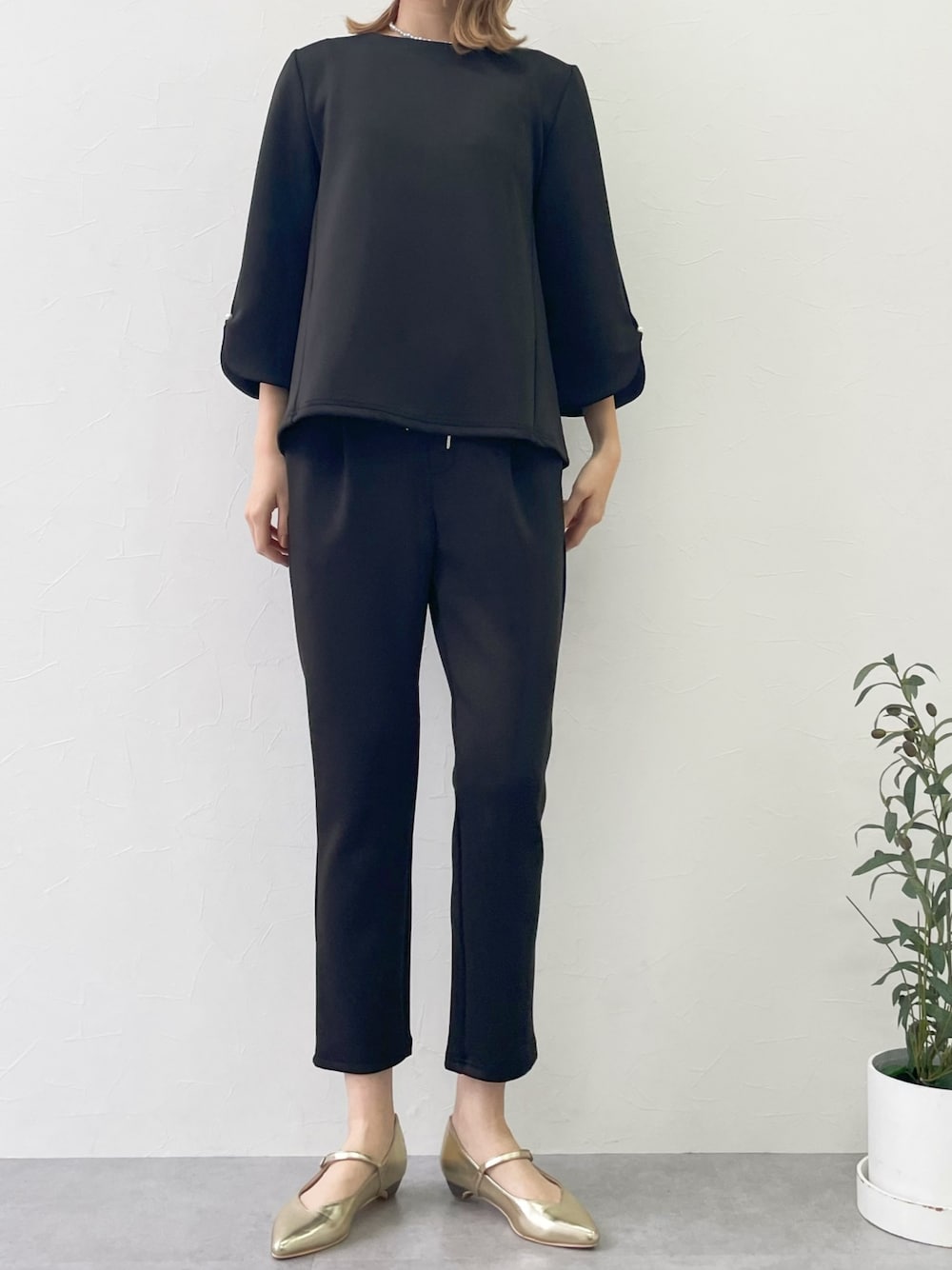 楽ちんカセット服コーデ🩶 同素材アイテムで着るだけきれいなコーディネートにしました。 シンプルで個性的なパンプスは疲れにくいです!