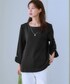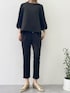 ス(nissen)のTシャツ/カットソー「パール調ビジュー使い9分袖トップス(きれいめダンボール素材)」を使ったコーディネート