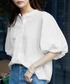 ス(nissen)のシャツ/ブラウス「ボリューム袖バンドカラーシャツ」を使ったコーディネート