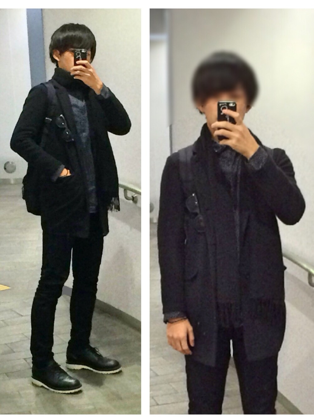 オールブラック第二弾。 また別日にとっておきました。 黒を強めにしたかったので、 マフラー黒にして、 リュックをあわせました。 シャツとコートは前回と同じで、 その他を変えてます。 前回と別のHAREのニットを 中に着てるんですが、、、 なぜにHAREで一気に2着も 別物の黒ニットを買ったのか、、、笑 両方気に入ったから問題はないですが! インナーを紺にしてレイヤードに なるように意識しました。 コート脱いだら見えるけどね って感じにしました。 飲み会のときに全身黒で ゲイっぽさが増したと言われたが知らん。 おれはゲイだけはダメ、絶対。 スマホケースはもちろん[Champagne] Adventure弾きたいね。