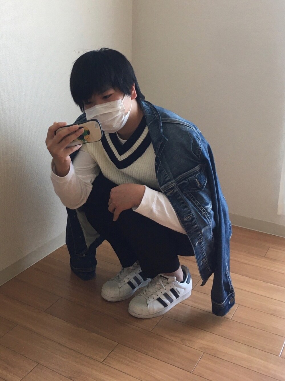 春コーデ モノトーン+デニムジャケット の組み合わせです。 ポイントはロンTと合わせたニットベストです。 GUのイージーアンクルパンツはとても良いです。 オススメします。 ニットベスト 白 Tシャツ 白 パンツ 黒 デニムジャケット 青 スニーカー 白 このコーデはいかがでしょうか。 (*´∇`)ノ ではでは~