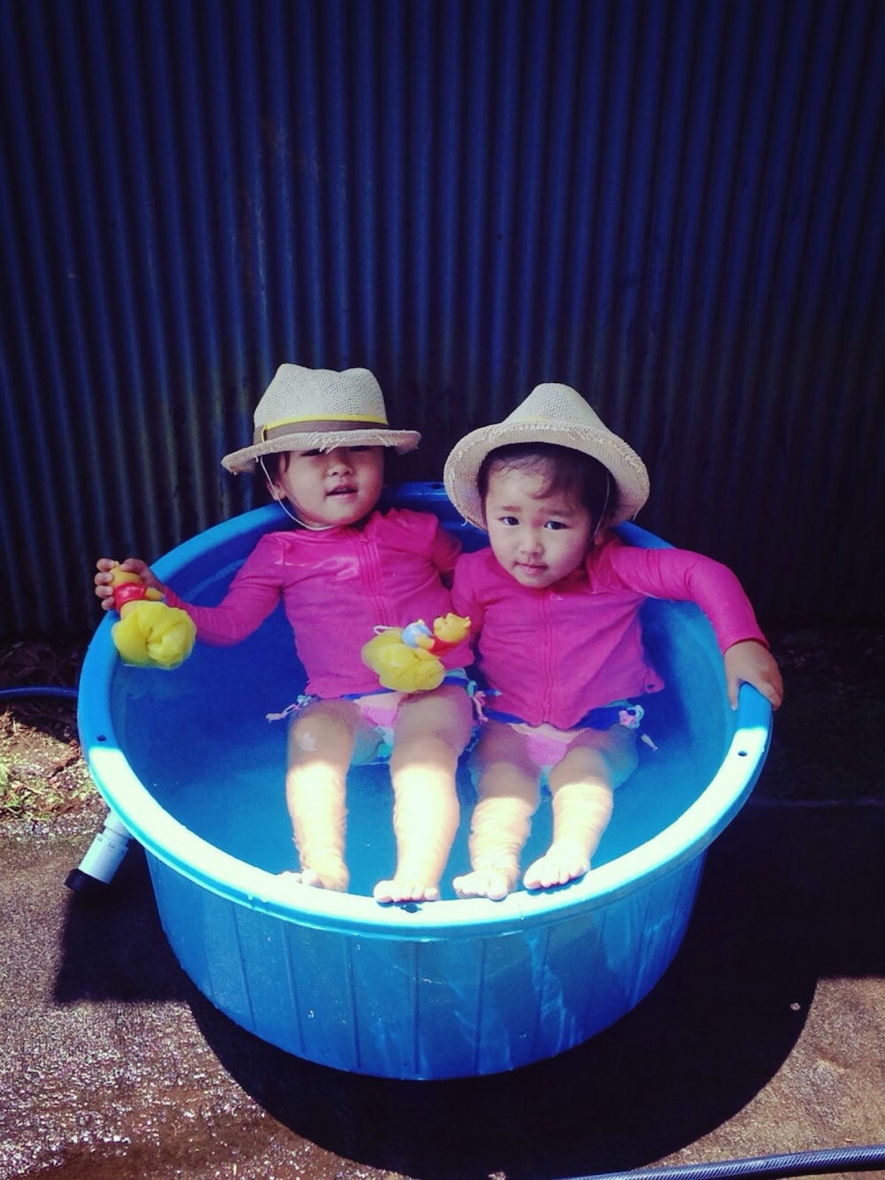 我が家はビニールプールではなく 巨大サイズのタライでプール。笑 片付けも楽。 毎日毎日外でプールに水遊び。 日焼け止め塗るのも面倒くさいので 今年はラッシュガード!! でも、「焼けてますね〜」って よく言われる。笑