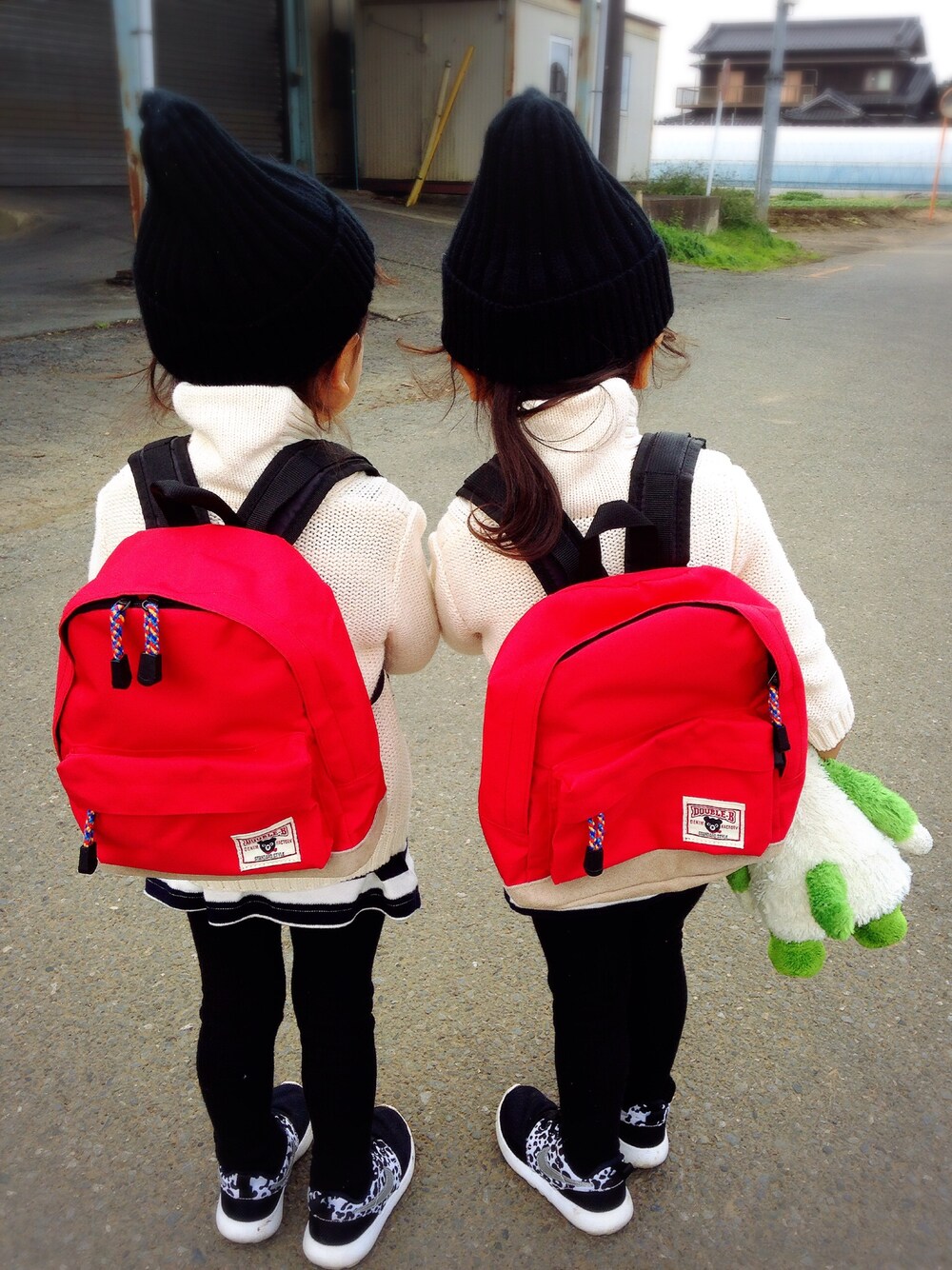 七五三の御祝いでプレゼントしてもらったミキハウスのリュック♥️♥️ モノトーンコーデの差し色になって可愛い♥️♥️