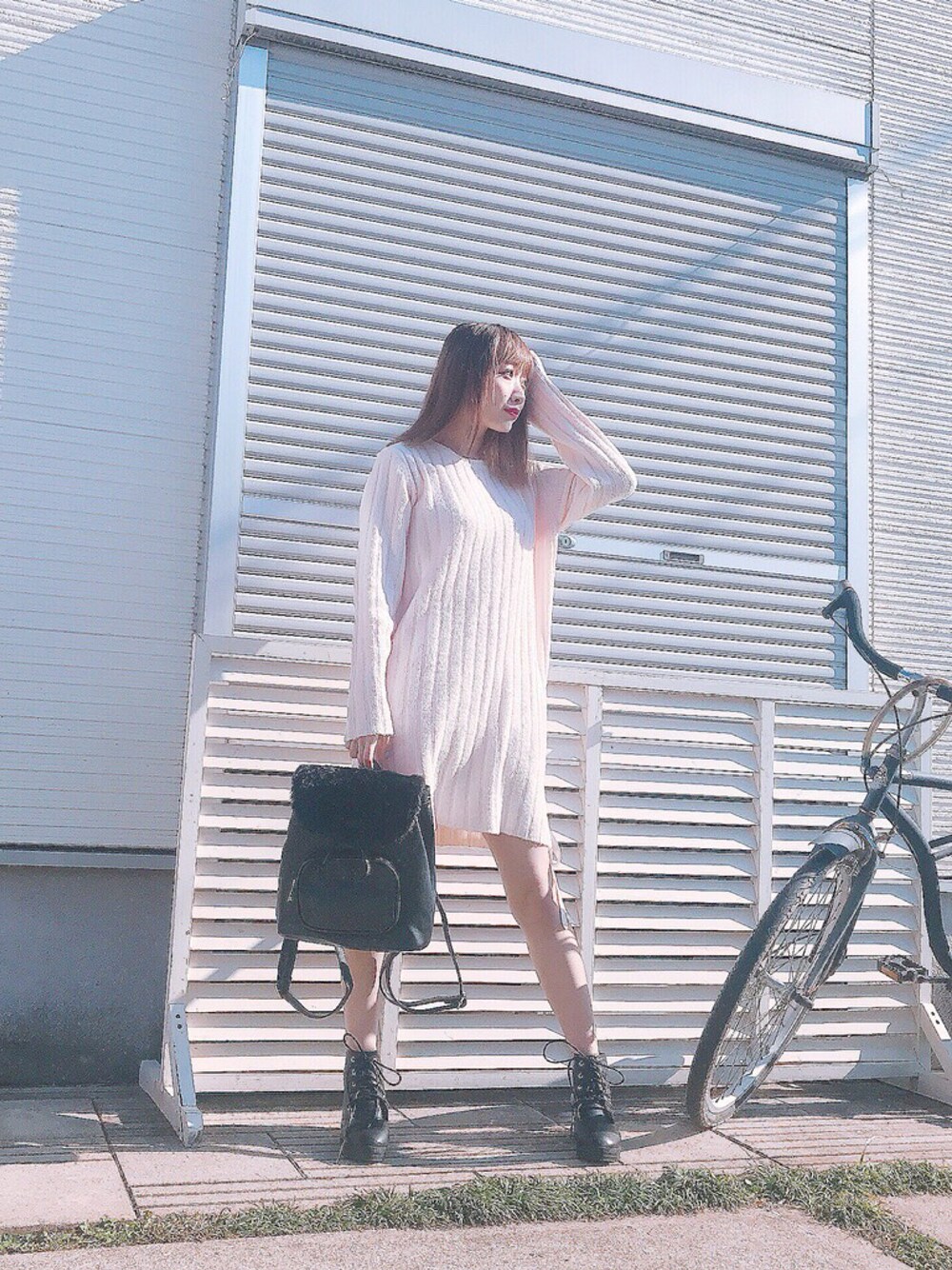 プチプラGRLコーデ ピンクニットワンピでちょこっと可愛さを︎︎☺︎❤︎