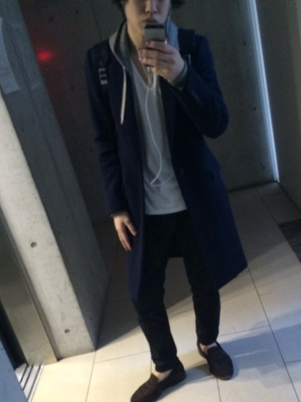 無地のVネックの白Tシャツにパーカーに サリバンのチェスターコートで カジュアルダウンしてみました!