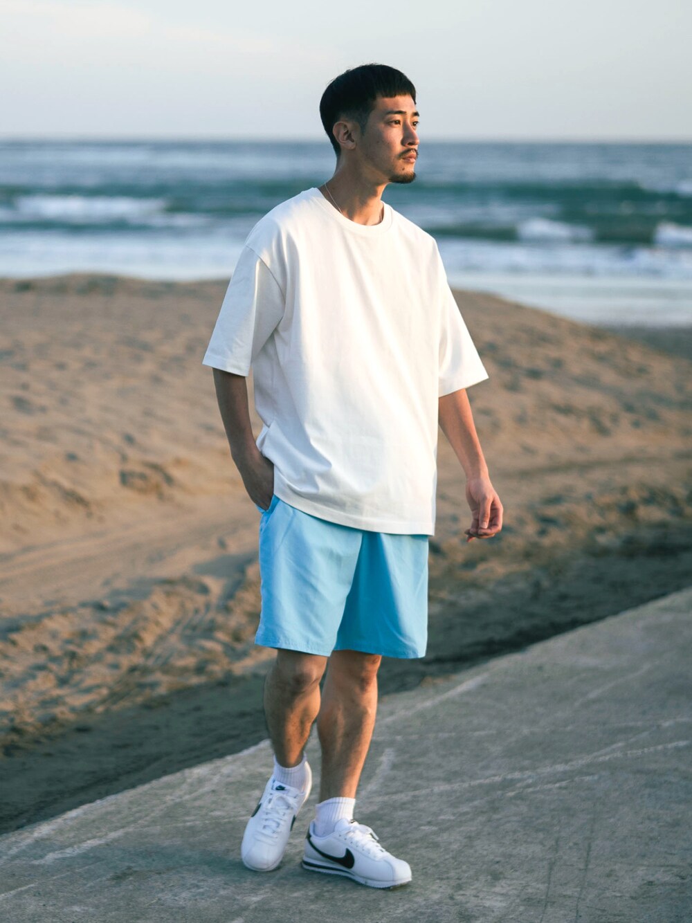 鮮やかなブルーが夏に映えそうだなと!足元もNIKEで。