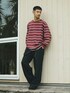 ゆったりとボーダーロンTを着ました。