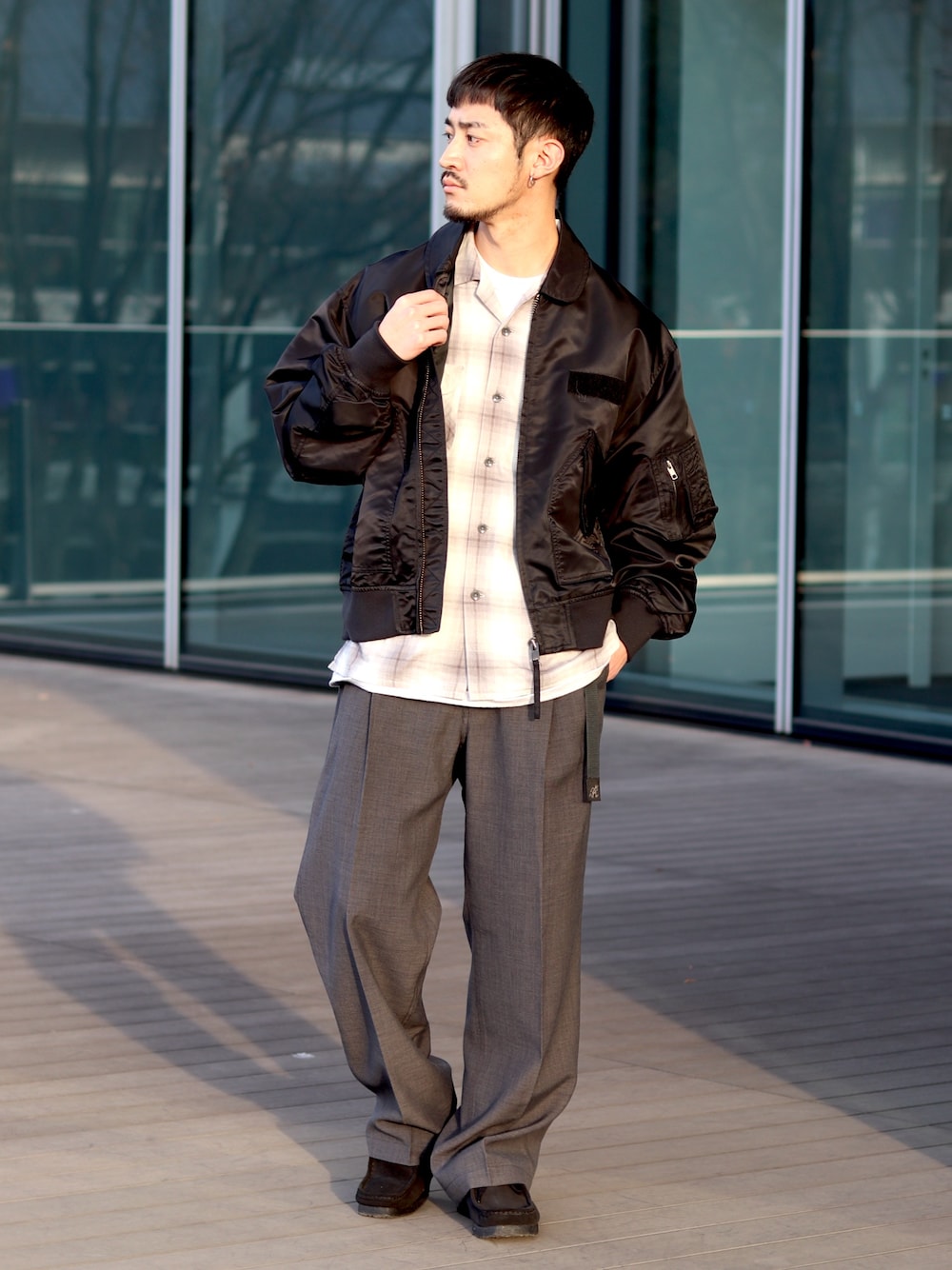 シュン(B:MING LIFE STORE by BEAMS)のミリタリージャケット「【別注】WILD THINGS / CWU-36P」を使ったコーディネート