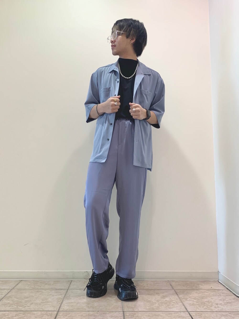 同じカラーのシャツとパンツを組み合わせてセットアップ風なきれいめコーディネートにしてみました! ルーズなシルエットと、ドレープの質感で大人っぽくモードな雰囲気も出せます! 革靴を取り入れるとより雰囲気が引き締まるのでぜひ取り入れて見てください!
