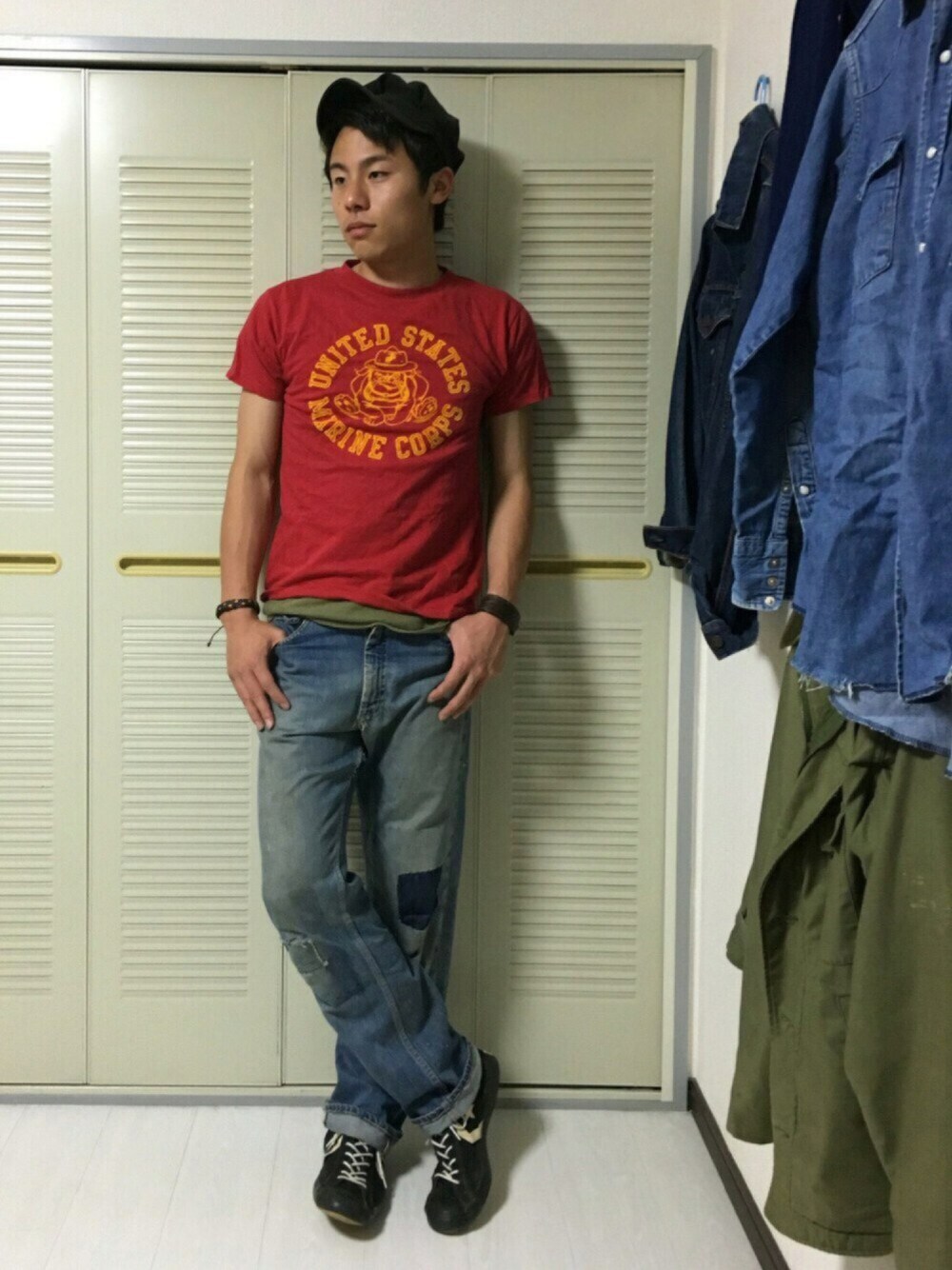 まあでも、赤だからね。笑 ちゃっかり企画に参加します! 企画に参加してもしっかりと vintageスタイルは貫きます!!! とくにこのTシャツは今は無き古着屋さんで最後に買った品物なんで思い出深いです。 犬の尻までぷりんとされてます。 かわいいです 笑