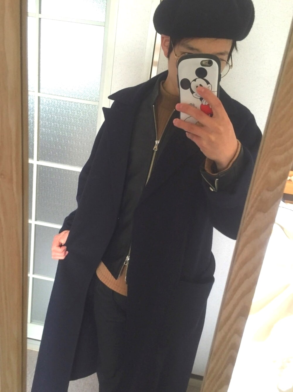 0124 テストいやだ〜 今日は雪も降ってるし朝まで勉強してから帰るつもりだからワックスべたべたなるなーと思ってベレー帽 アウターonアウターあったかい