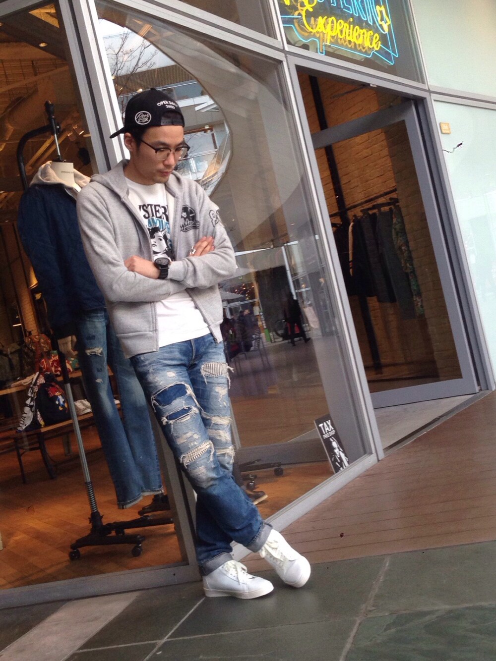 春の王道ヒスコーデ!!僕が履いているダメージデニムは復刻版として発売しており、とても人気のあるデニムです!!シルエットも綺麗ですし、ヘビロテ間違いなし☆☆☆