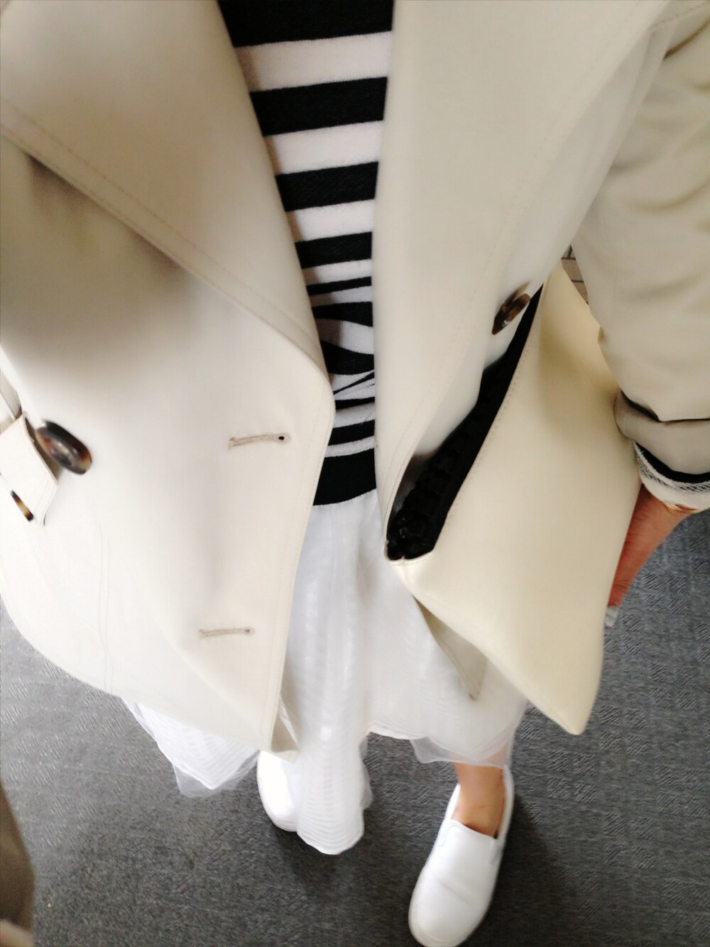 halのスカート「ボーダーハイネック wcloset ギンガムチュールスカート wcloset スリッポン vans」を使ったコーディネート