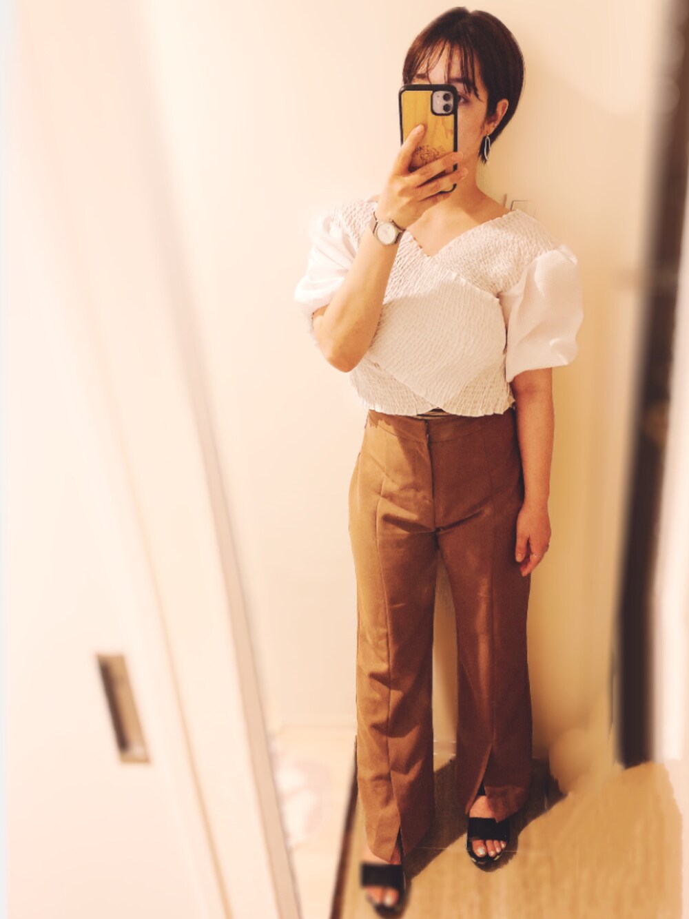 予約していたセンタースリットのパンツで少し秋を取り入れて🤎 シルエットも綺麗で着回しがききそう👏✨ ヘビロテの予感💓