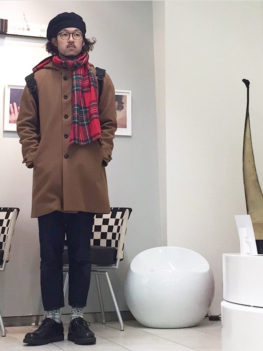 今年はコートがある マフラーは大塚屋で買った生地そのまま巻いてる
