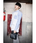 細身のフォルムでスタイリッシュな切り替えシャツです。 水色×白の爽やかな配色で涼しげな印象のクールかつキュートなアイテム。 袖とポケット部分に切り替え加工が施されています。 丈感や襟のデザインなどディティールの細部まで計算し尽された至極の一枚。 爽やかになるよう白と水色で統一しました!