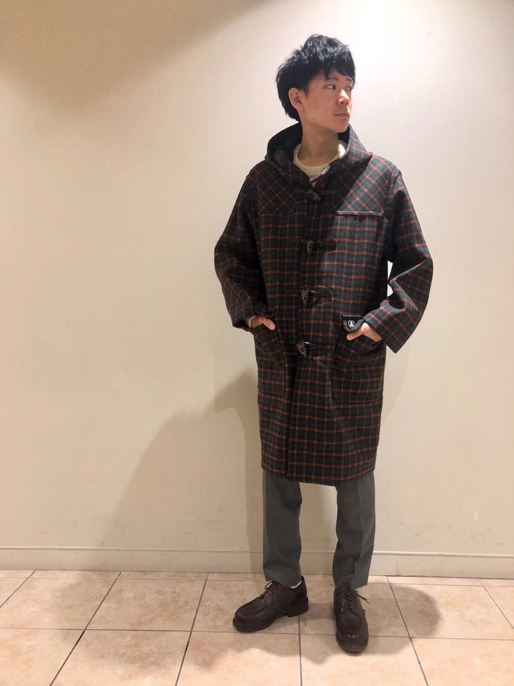 オーシバルのダッフルコートです。 ゆったりサイズで肌触りもよく、体格の良い方でも着やすいデザインです。 無地のデザインもございますのでご来店おまちしております。