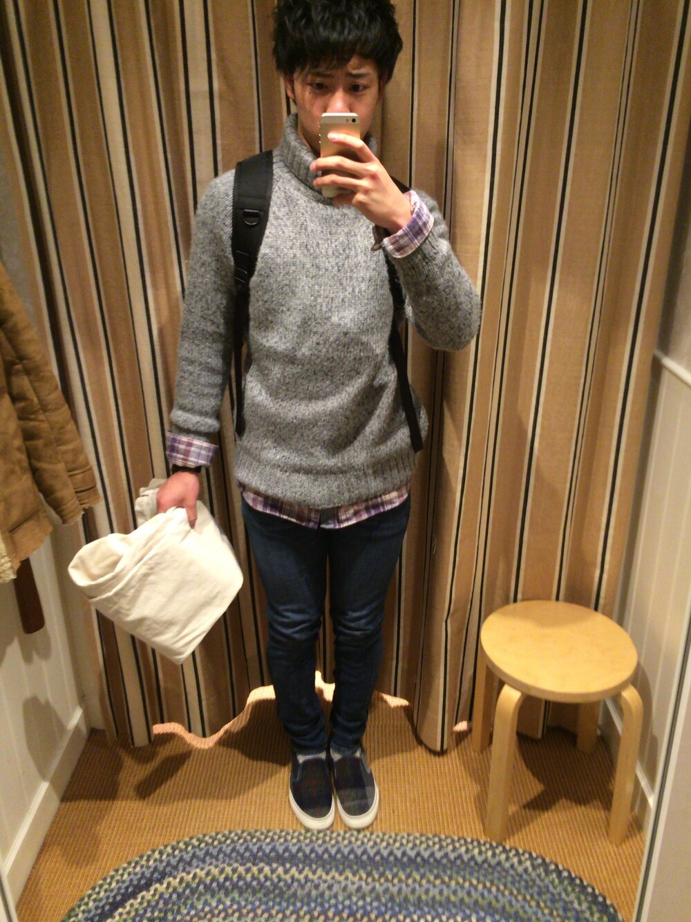 念願のタートルネック😎 右手にもってるコールテンも買いました