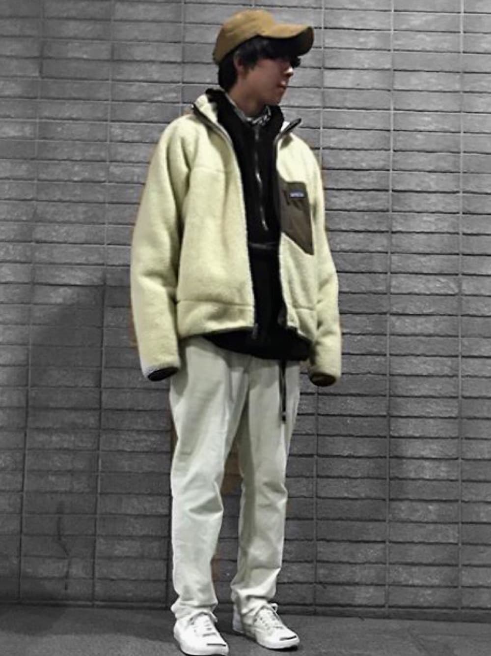 全体的に色をまとめ、濃さを変えることで雰囲気を出しました。 パタゴニアは大きいサイズで着てました。 パタゴニア、、、あったかいですね