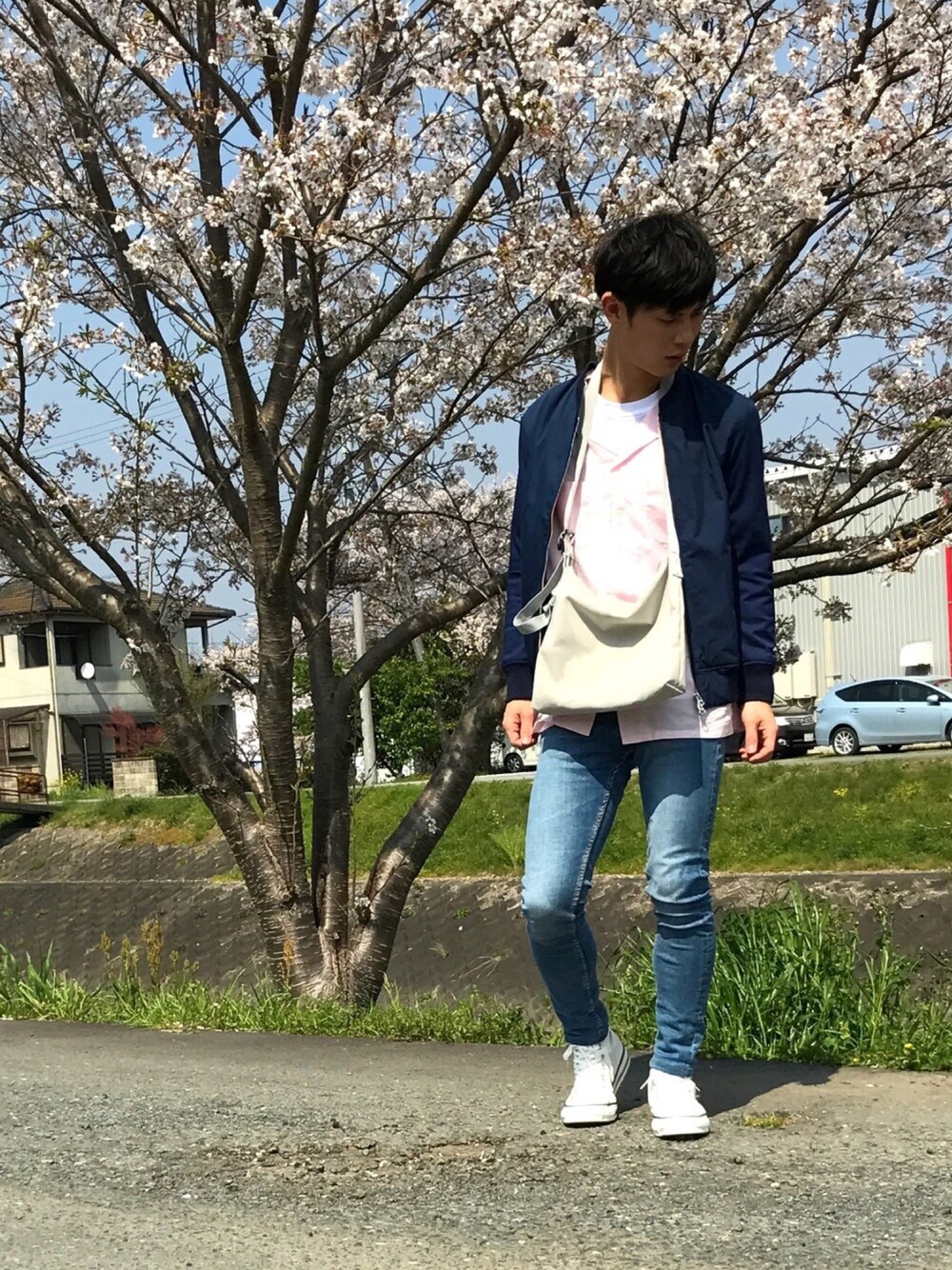 ご観覧ありがとうございます☺ 桜も見頃になりました🌸 今日のコーデ、ビューティーアンドユース率高いw 白コンのハイカットが綺麗にハマってくれました✨ それでは😌✋🏻