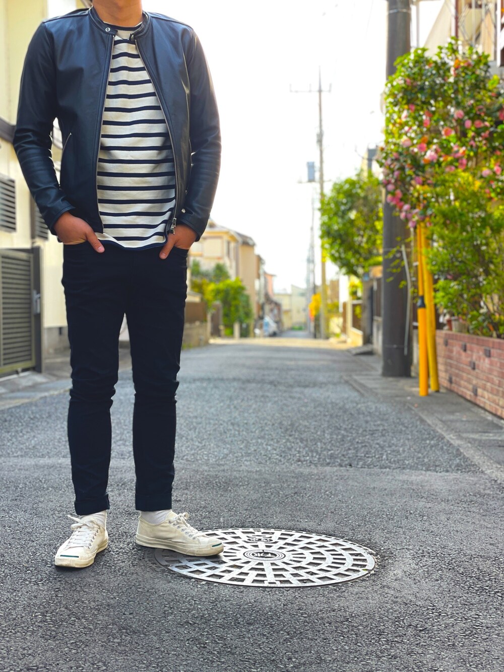 春はたくさんライダース着るぞー! outer:FREAK'S STORE tops:SAINT JAMES pants:H&M shoes:converse いつもいいね等ありがとうございます! 是非このコーデ良かったら いいね、SAVE、フォローお願い致します🤲😎