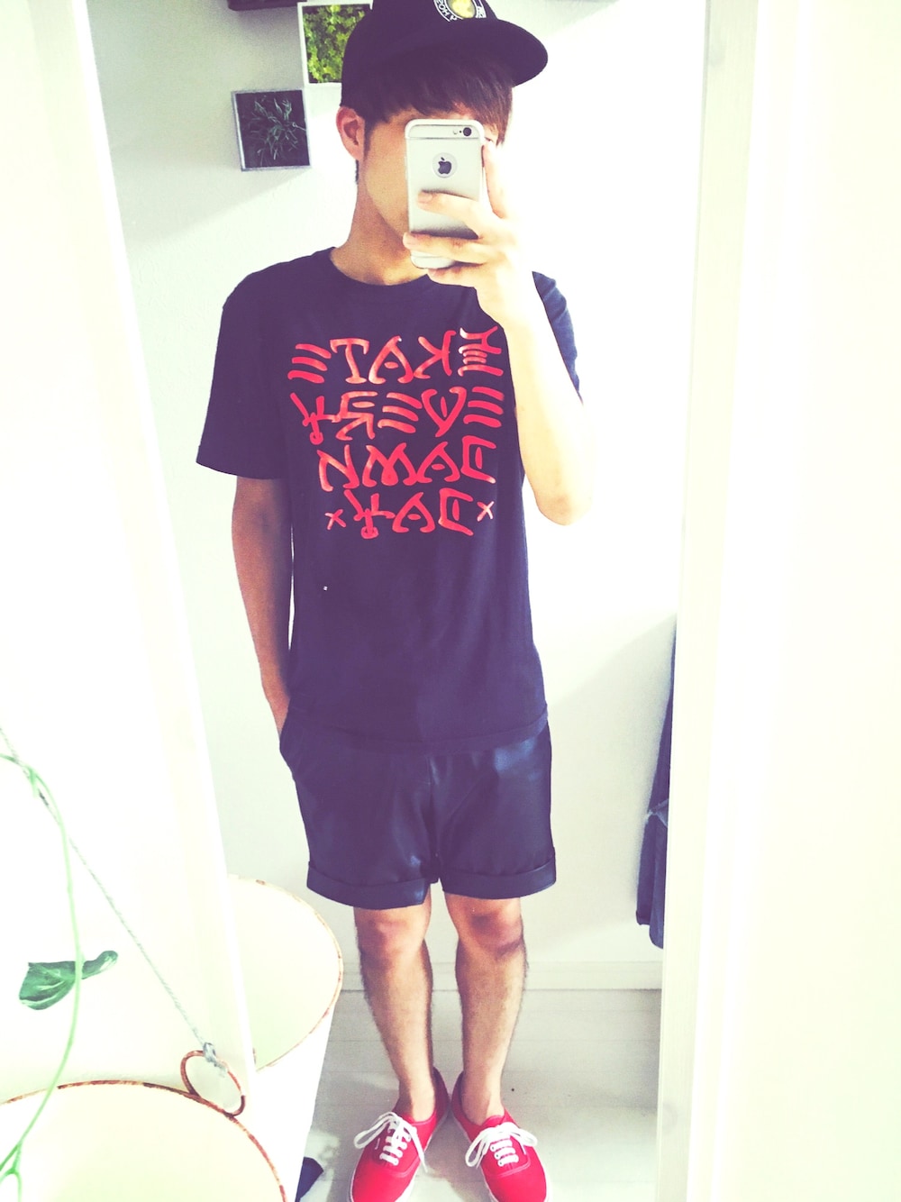 久々の投稿です♪最近暑過ぎなので短パンコーデ ばかりですが赤の差し色はやはり好き(*^^*) この格好のせいでかなり若く見られてしまう笑