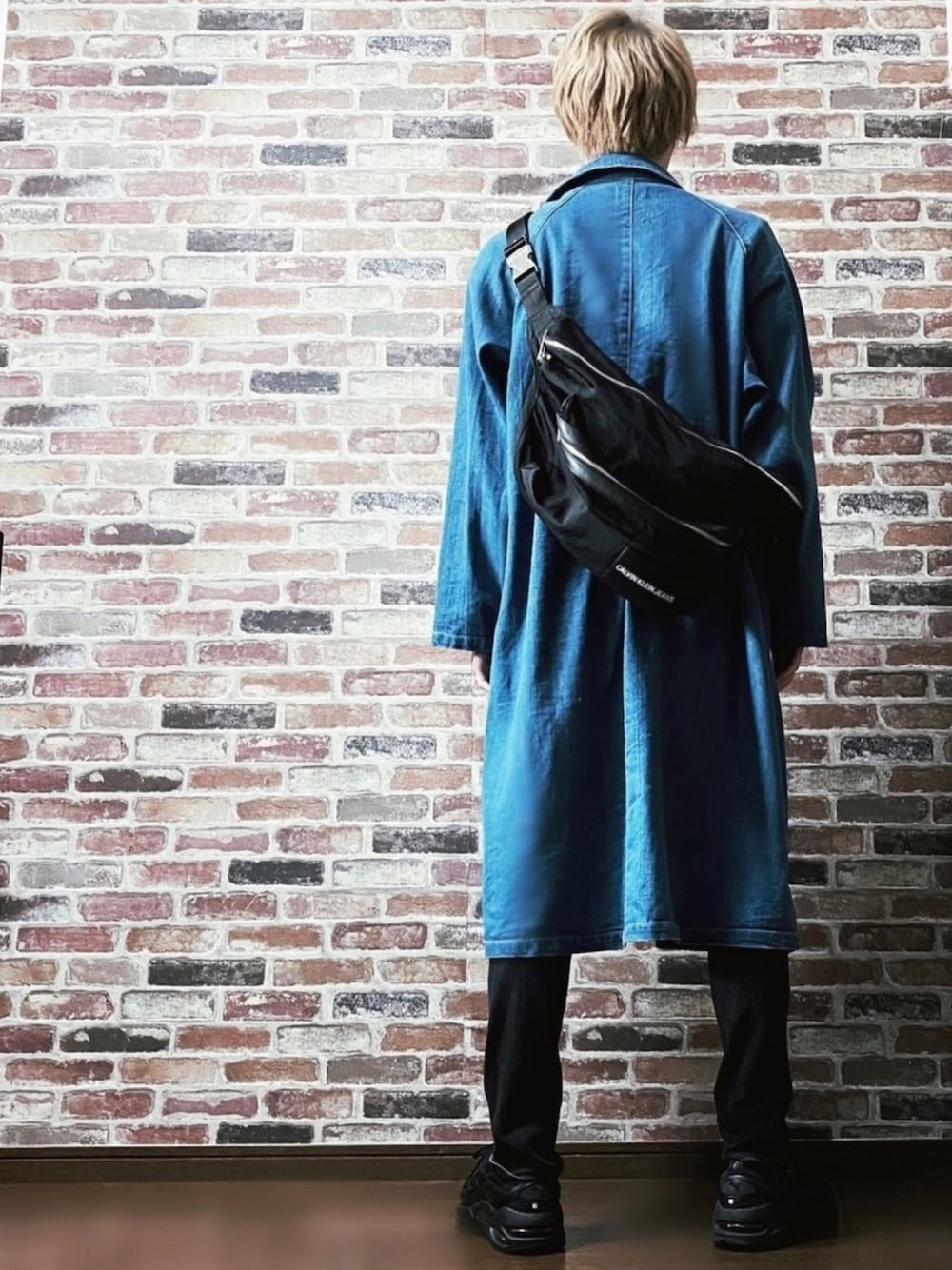 ちょびのステンカラーコート「LINEN×COTTONストレッチデニムBIGバルカラーコート」を使ったコーディネート