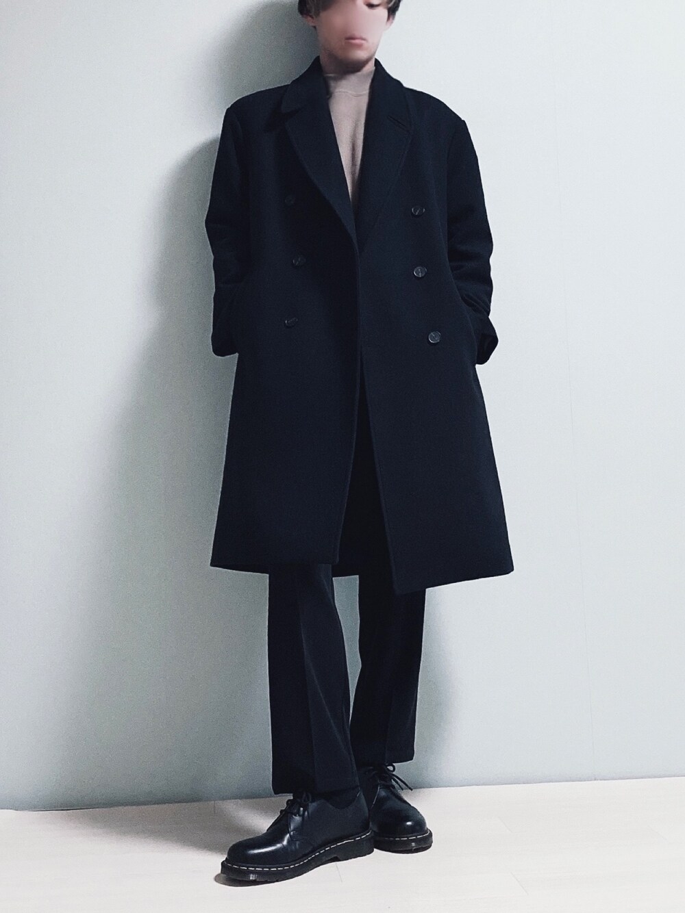 ちょびのチェスターコート「オーバーサイズ W60メルトン ロングダブルチェスターコート」を使ったコーディネート