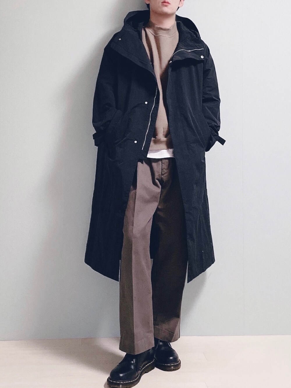 ちょびのモッズコート「オーバーサイズ フード付きロングコート」を使ったコーディネート