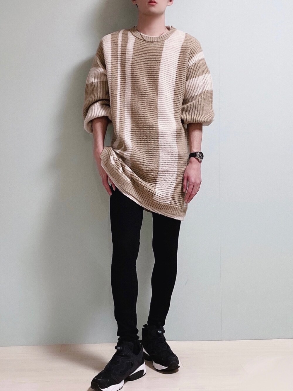 いつもありがとうこざいます ▫️RATTLE TRAP ハイパーストレッチスキニーパンツ ジェギンス スキニーパンツを得意とするラトルトラップがシルエットにこだわりながら履き心地を追及し開発した「ハイパーストレッチスキニーパンツ ジェギンス」 確かに1度履いたらやめられなくなる履き心地です ▫️ Nilway モヘアタッチ配色ストライプスーパーオーバーサイズニット この柔らかい生地感とスーパーオーバーサイズがツボで🤤