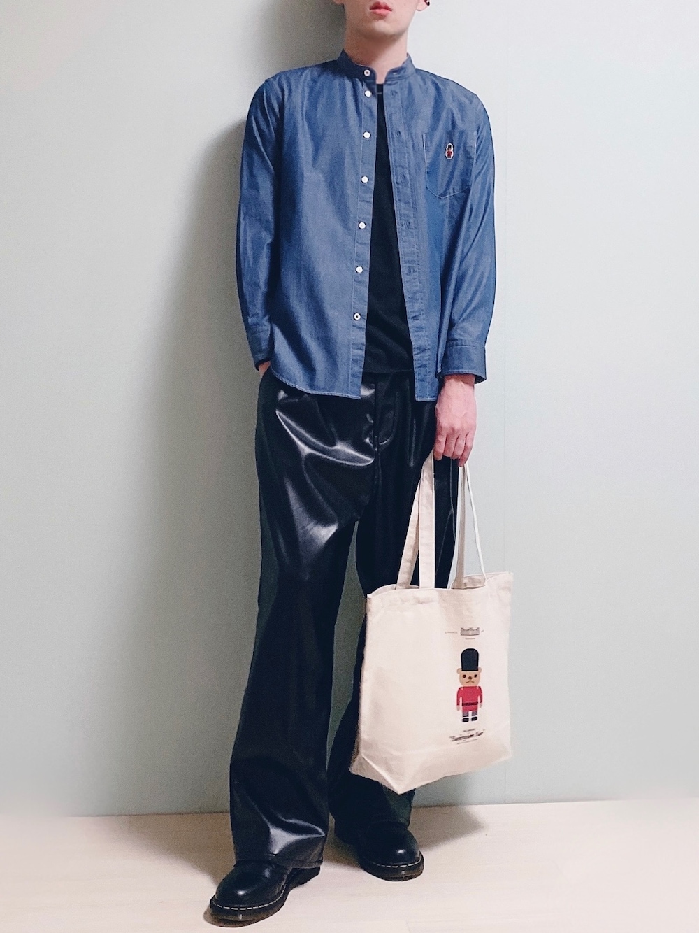 ちょびのシャツ/ブラウス「デニム/ストライプ BB バンドカラー」を使ったコーディネート