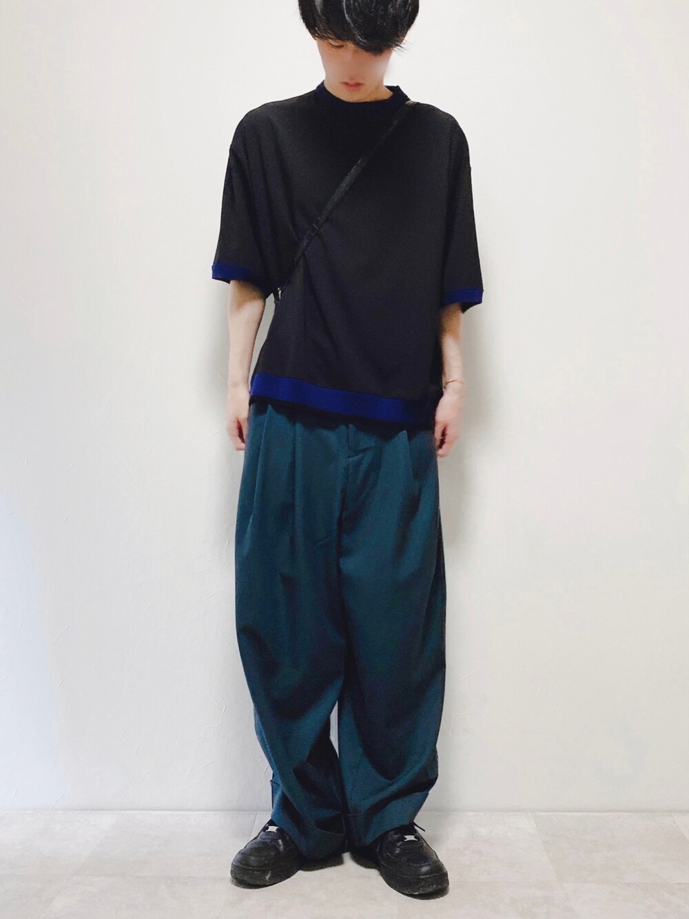 ちょびのTシャツ/カットソー「ニットリブ付き布帛Tシャツ」を使ったコーディネート