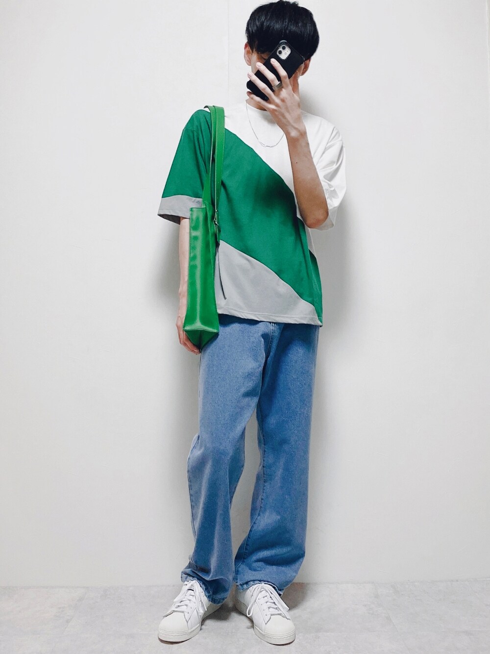 いつもありがとうございます niko and... アソートカラーブロックTシャツ 各カラーそれぞれ1か所に布帛を使っており、大胆な切り替えデザインがインパクトのあるアイテム 4色展開でそれぞれデザインが違ってめちゃオシャレ 僕はグリーン推しです❗️
