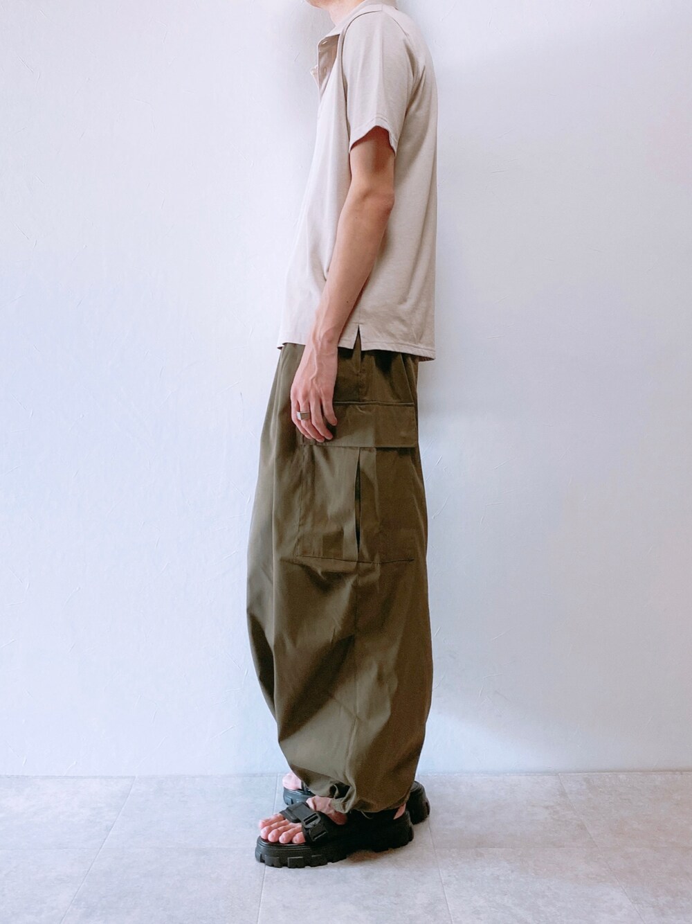 ちょびのカーゴパンツ「25SS 【新色追加】セットアップ対応 ミリタリーワイドカーゴパンツ オーバーサイズ サイドポケット 裾ドローコード パラシュートパンツ 【Confirm】」を使ったコーディネート